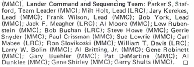 I developed the system definition for the Viking Lander simulation program which was used in the daily budgeting of the Lander resources for the science team. The output of this program was used in creating the Lander daily uplink and sequencing program.
